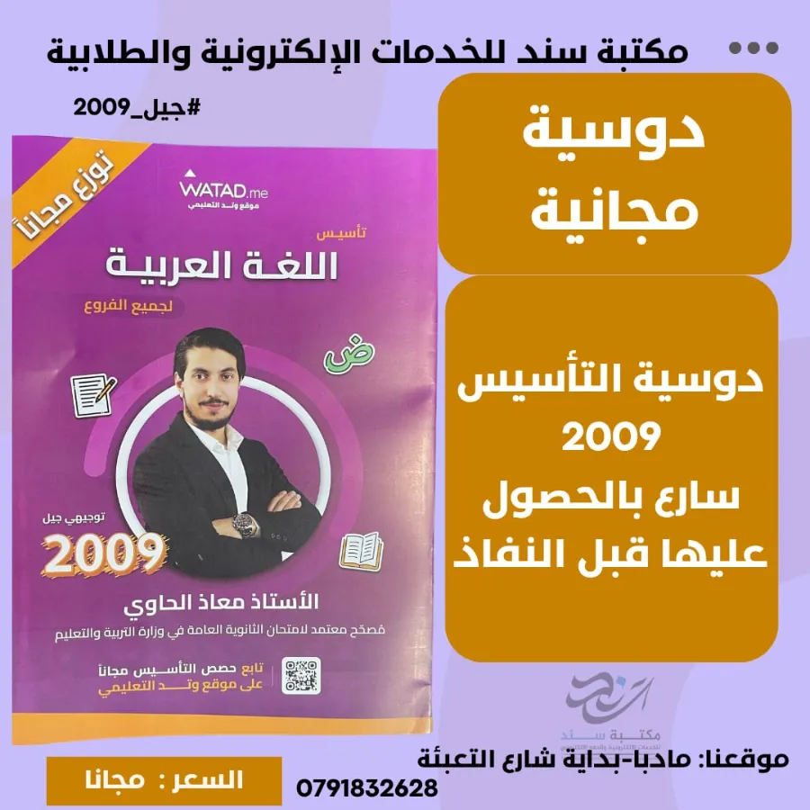 مكتبة سند - دوسية تأسيس اللغة العربية لجيل 2009 للاستاذ معاذ الحاوي -مجانا