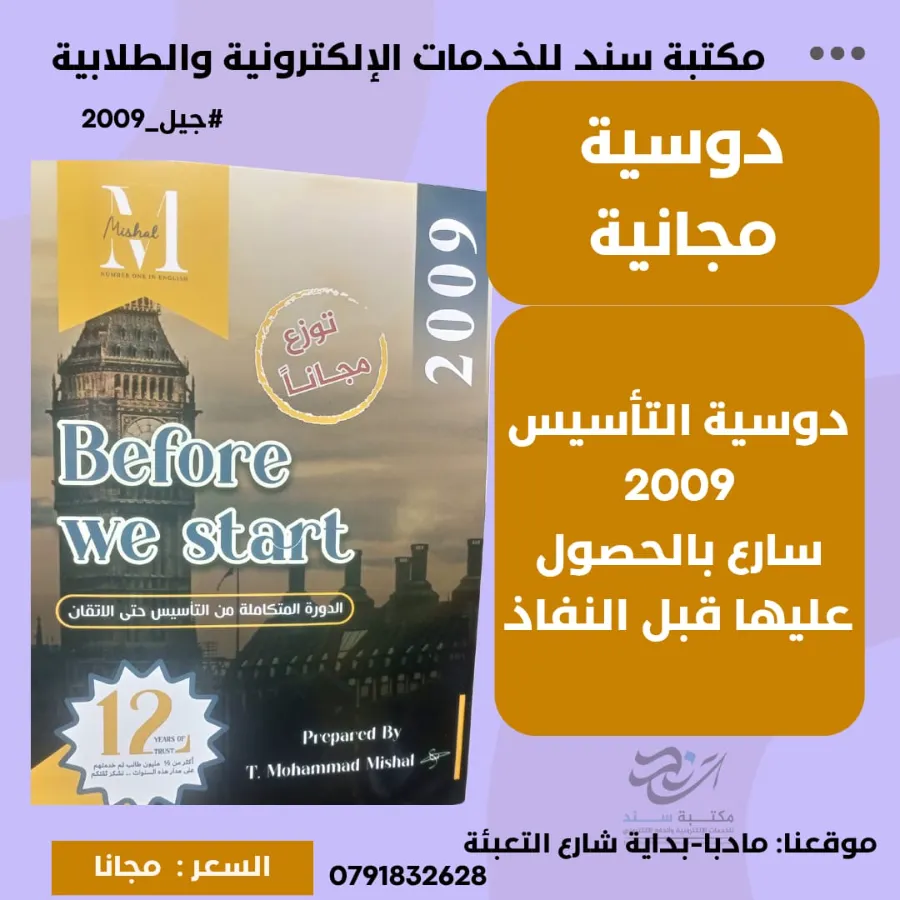 مكتبة سند - دوسية تأسيس اللغة الانجليزية - للاستاذ محمد مشعل لجيل 2009