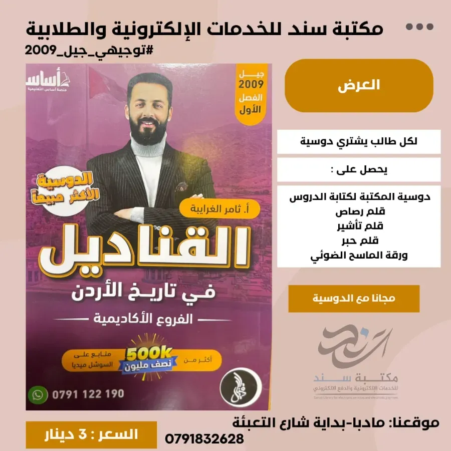 مكتبة سند - دوسية القناديل في تاريخ الاردن فصل اول - ثامر الغرايبة لجيل 2009