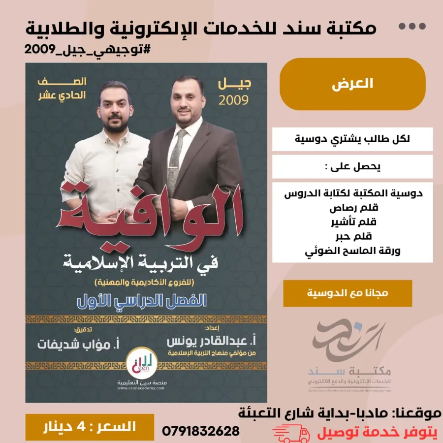 مكتبة سند - الوافية في التربية الاسلامية ف1- عبدالقادر يونس ومؤاب شديفات 2009
