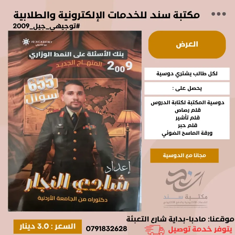 مكتبة سند - بنك اسئلة تاريخ الاردن شادي النجار 2009 ف1