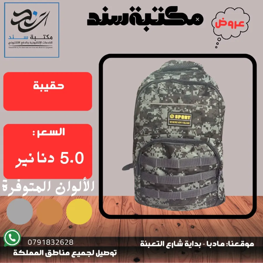 مكتبة سند - حقيبة جيشية الوان متعددة
