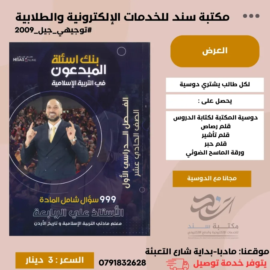 مكتبة سند - بنك اسئلة المبدعون تربية اسلامية علي الربابعة 2009 ف1