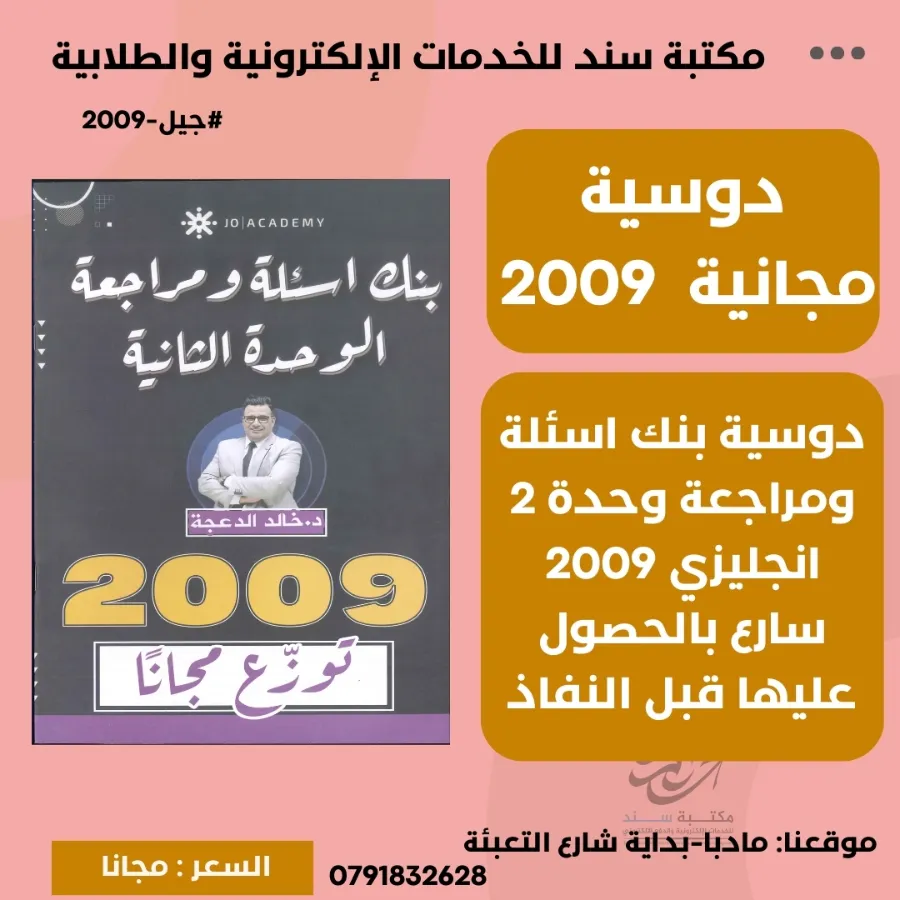 مكتبة سند - بنك اسئلة ومراجعة الوحدة الثانية انجليزي خالد الدعجة 2009 ف1