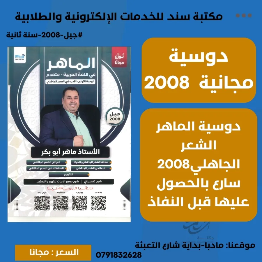 مكتبة سند - الماهر ابو بكر الشعر الجاهلي عربي تخصص 2008 س2 ف1 (مجانية)