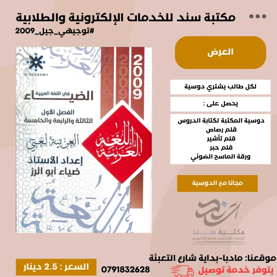 بكج بطاقة ضياء ابو الرز لغة عربية جو اكاديمي 2009