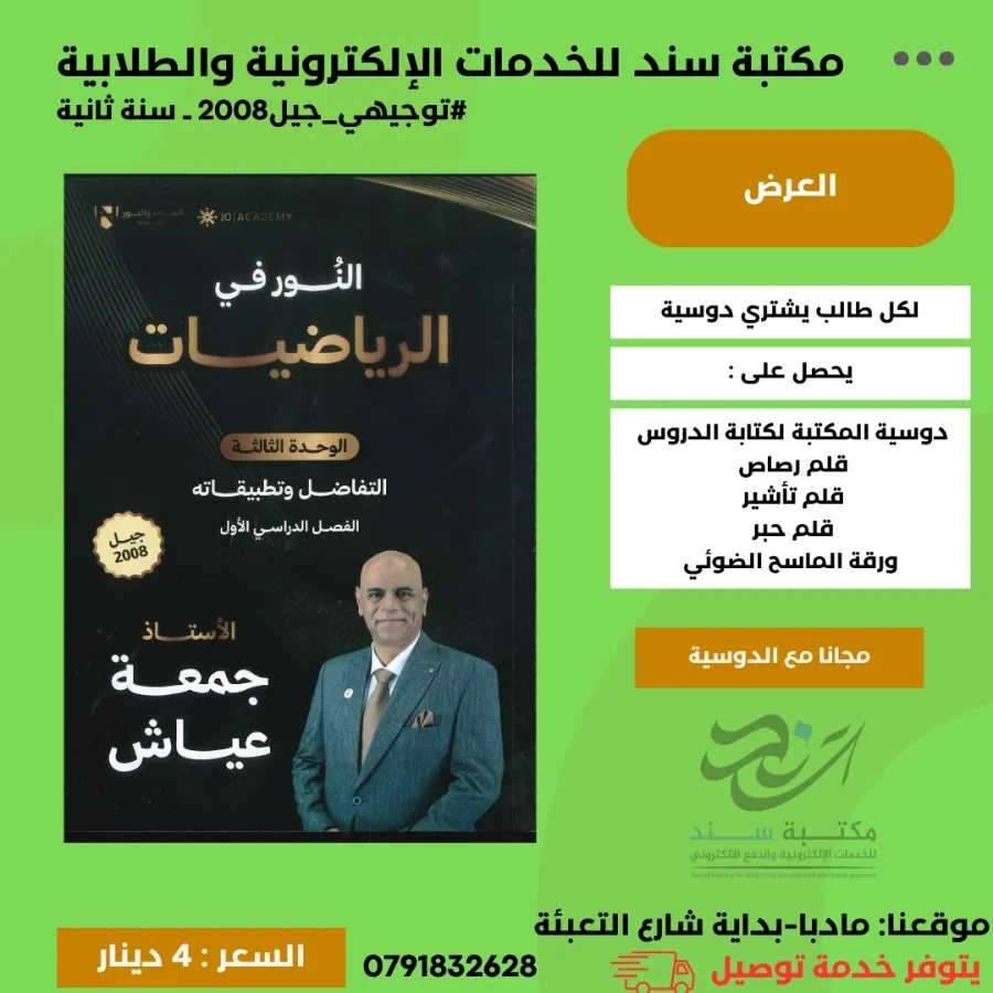 مكتبة سند - النور في الرياضيات المتقدم جمعة عياش الوحدة الثالثة 2008 ف1