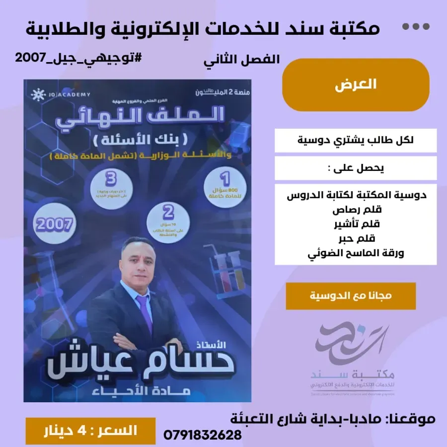مكتبة سند - الملف النهائي ( بنك الاسئلة ) العلوم الحياتية حسام عياش 2007
