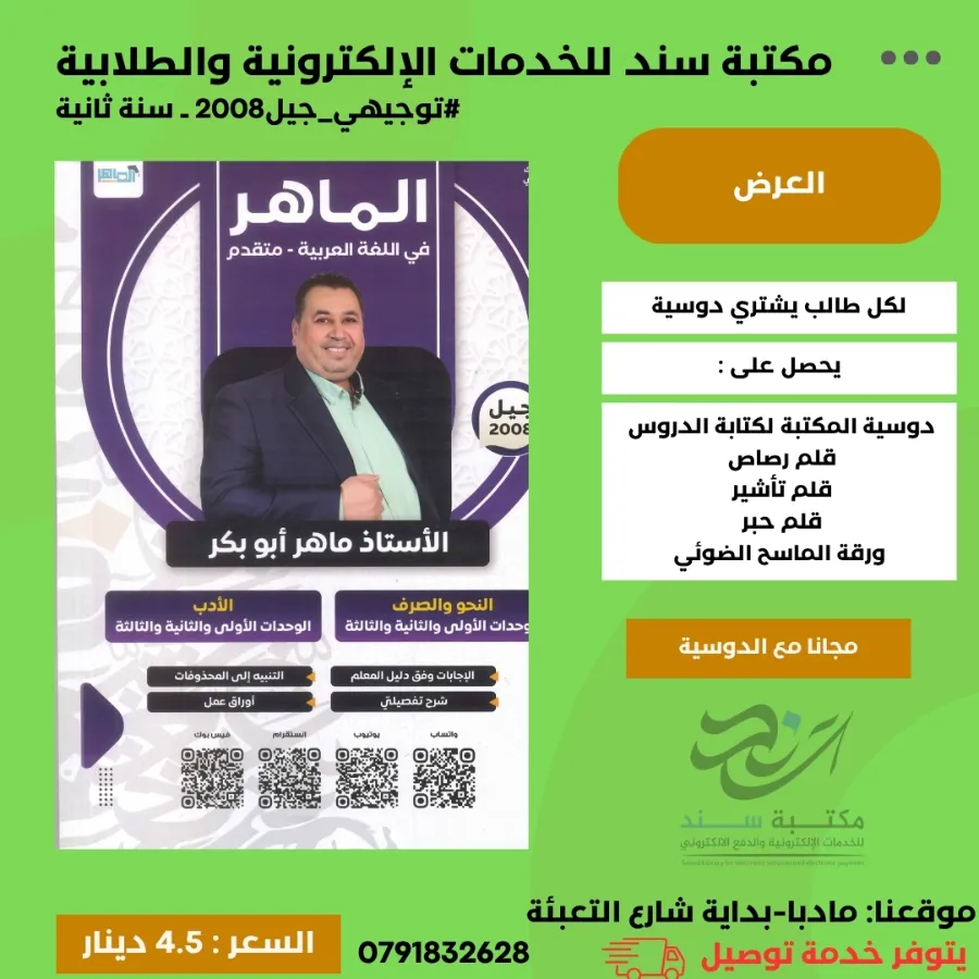 مكتبة سند - الماهر (عربي تخصص) وحدة 1+2+3 - النحو والصرف والادب 2008
