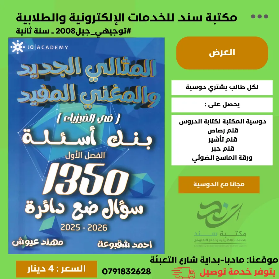 مكتبة سند - بنك المثالي في الفيزياء - احمد شقبوعة للفصل الاول 2008