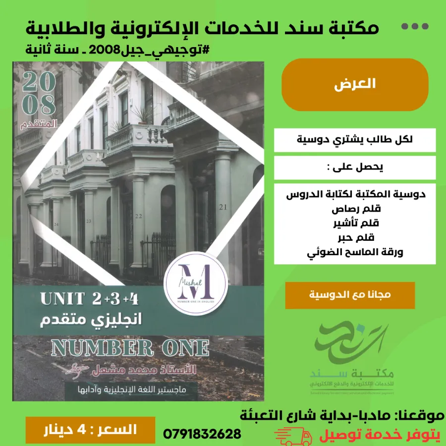 مكتبة سند - انجليزي متقدم وحدة ( 2+3+4) للاستاذ محمد مشعل لجيل 2008