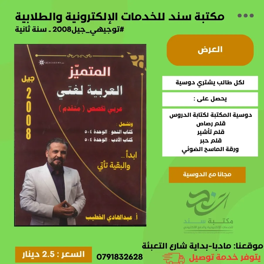 مكتبة سند - اللغة العربية - المتقدم عبد الهادي الخطيب وحدة (4+5) 2008 ف1 س2