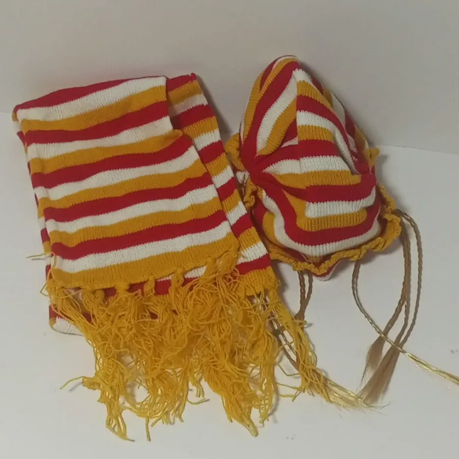 طاقية بناتي مع خصل شعر ذهبية و لفحة