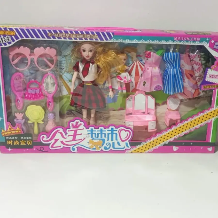 مكتبة سند - باربي مع طقم تسريحة + ملابس + تواليت