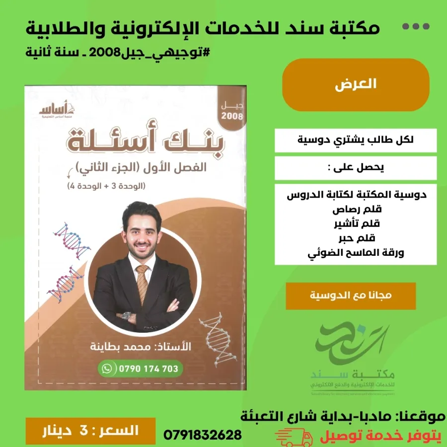 مكتبة سند - بنك اسئلة الاحياء الجزء الثاني وحدة (3+4) محمد بطاينة 2008