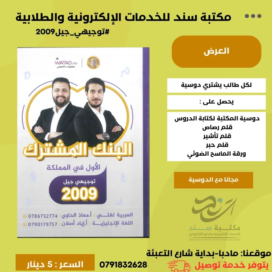 بنك الأسئلة المشترك (عربي+انجليزي) 2009 - الحاوي وأصلان ف1