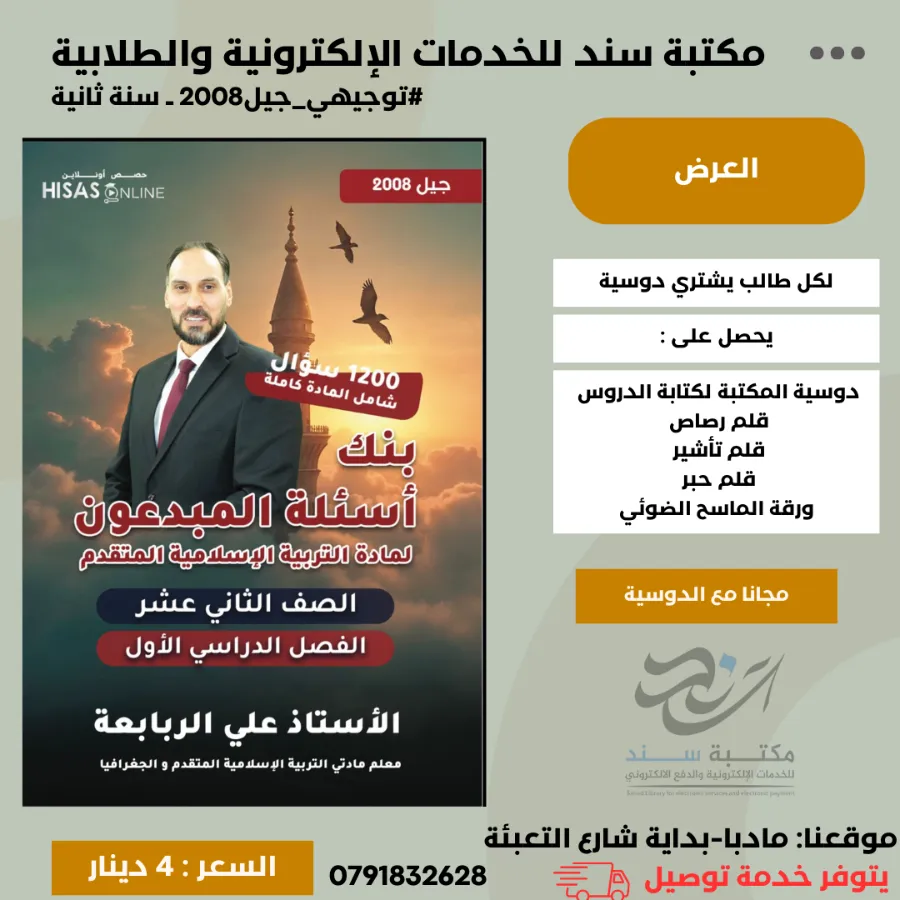 مكتبة سند - بنك اسئلة المبدعون في التربية الاسلامية المتقدم - علي الربابعة ف1