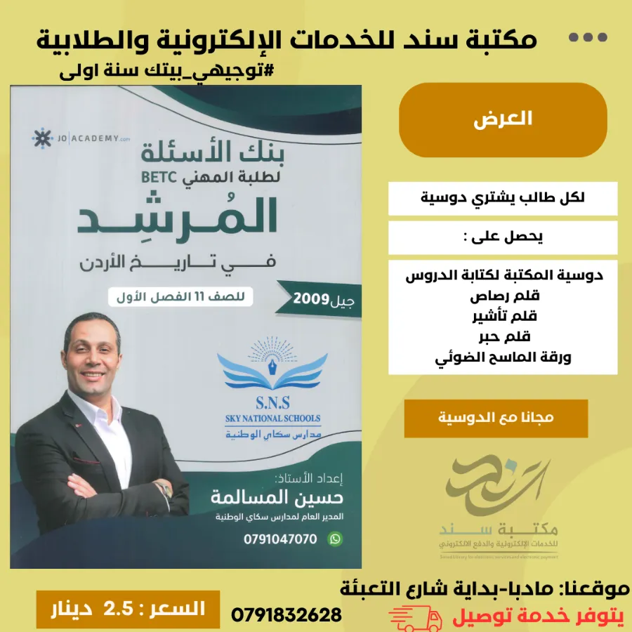 مكتبة سند - بنك المرشد في تاريخ الاردن - بيتك فصل اول - اول ثانوي