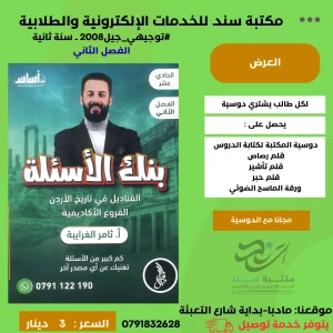 مكتبة سند - بنك الاسئلة تاريخ الاردن - ثامر الغرايبة - 2009 - فصل ثاني