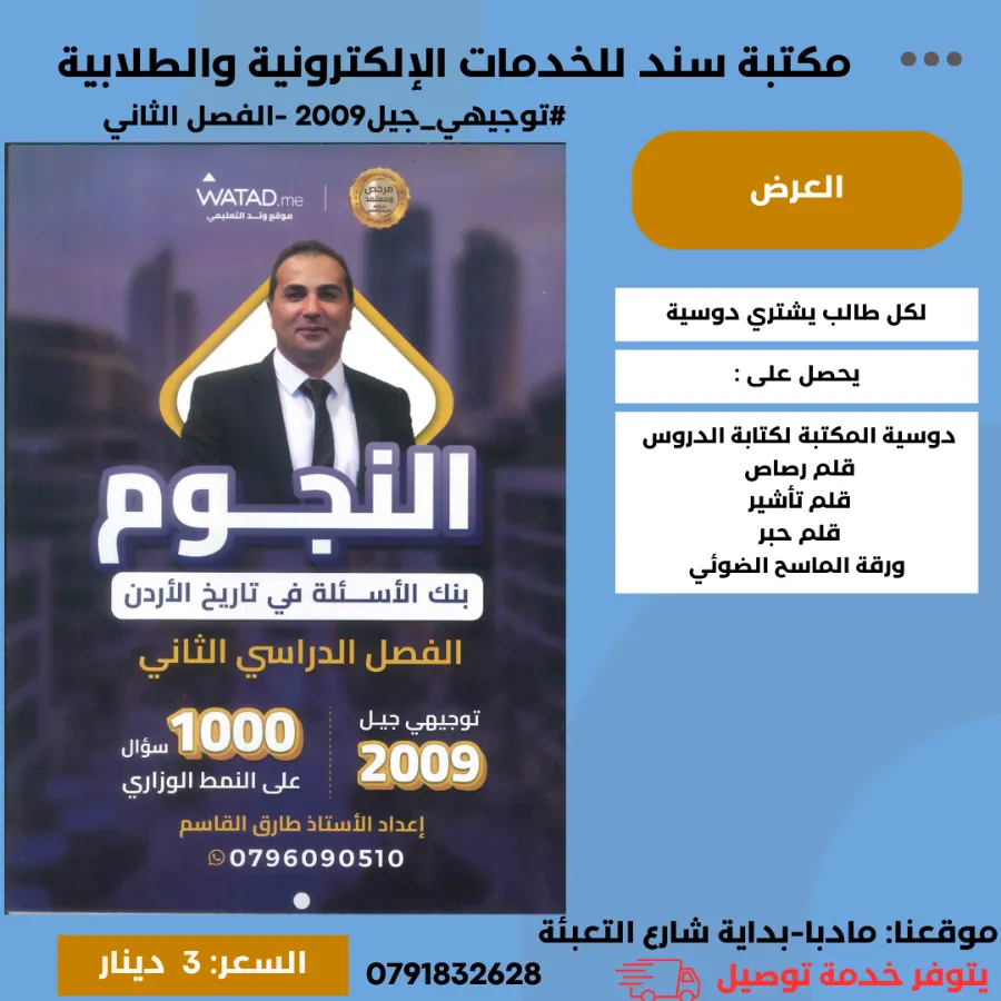 مكتبة سند - بنك الأسئلة النجوم في تاريخ الأردن - فصل ثاني - 2009