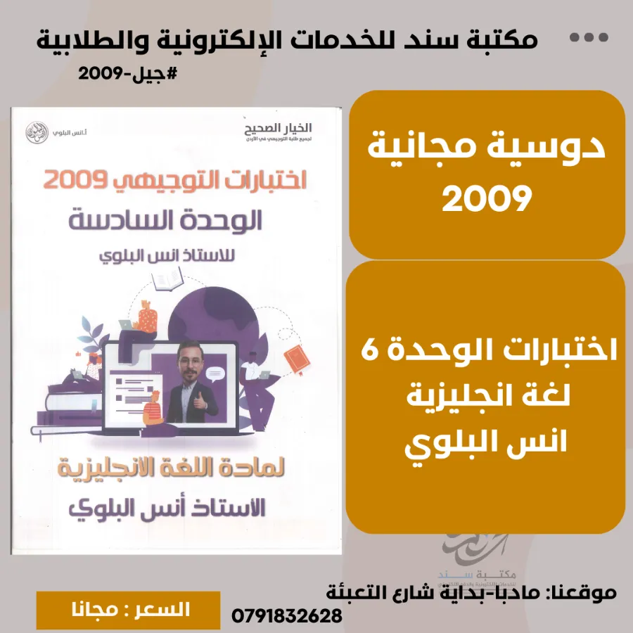 مكتبة سند - اختبارات الوحدة السادسة في اللغة الانجليزية - انس البلوي 2009